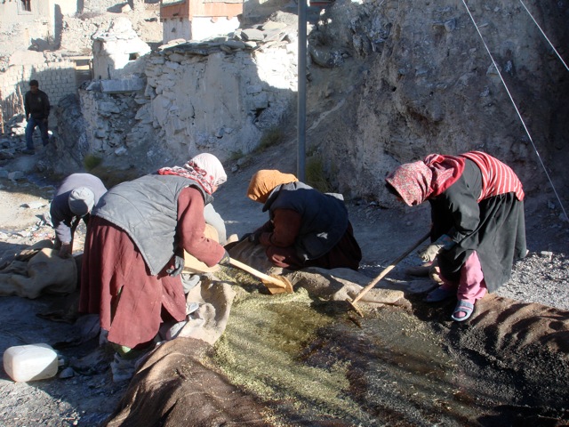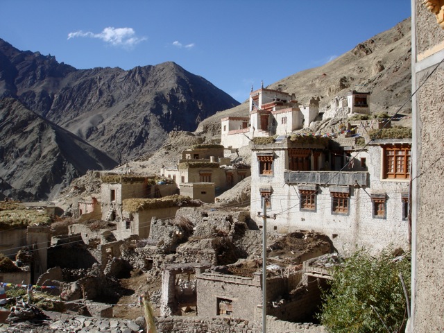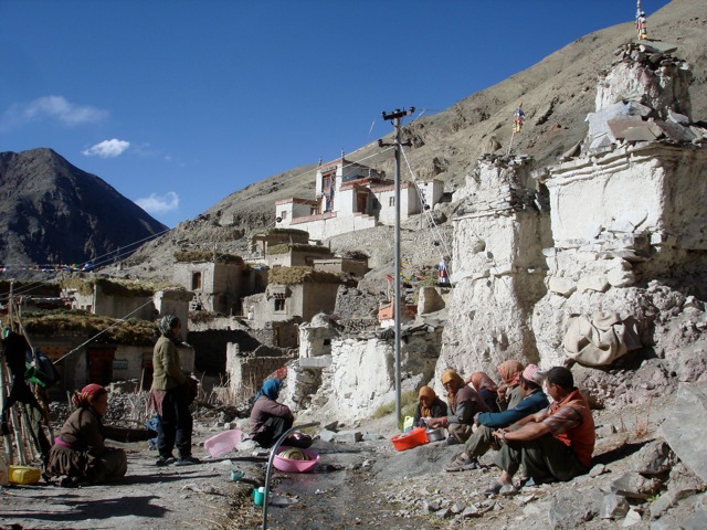 The Village of Rumbak in Ladakh. The power lines feed from a generator that runs for a few hours every evening. The generator and the single sat phone, both of which the village received in 2009, have made life a little easier. When a village elder was severely injured that year, a call on the phone promptly brought a military helicopter that rushed him to the hospital in Leh. Ladakh has something like one hundredth of the population density of Nepal, but there are almost as many Indian military stationed in Ladakh as there are natives because of the area's strategic importance. The Indian government seems to make a positive effort to maintain good relations with the Ladakhis by supplying infrastructure – and Indian troops stationed there seem to be extremely polite as well. Even when I was once arrested there for being in a restricted area, they were very cordial towards me. |